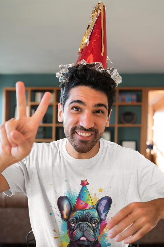 Festive Birthday Frenchie - Joyous Graphic T-shirt