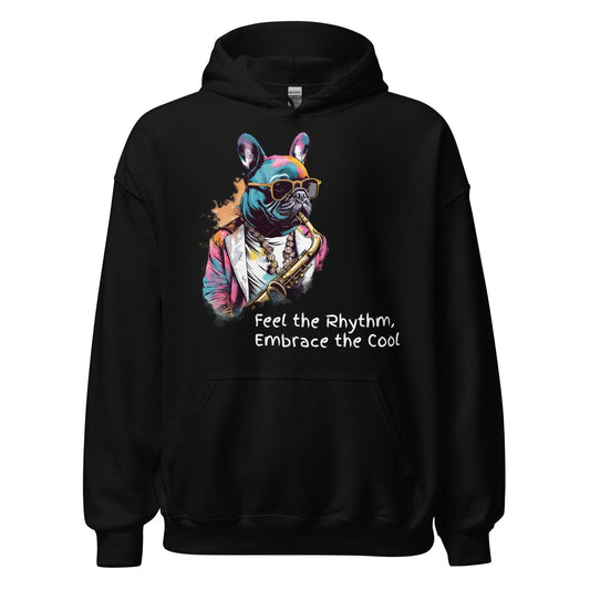 Jazzy Frenchie Saxophonist Unisex Hoodie