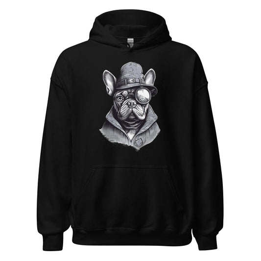 Frenchie Monocle: Stylish Canine Fashion with a Touch of Sophistication - Unisex Hoodie