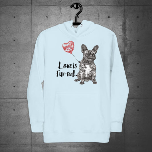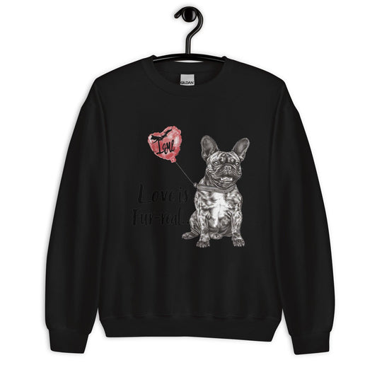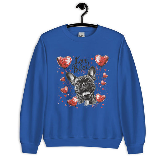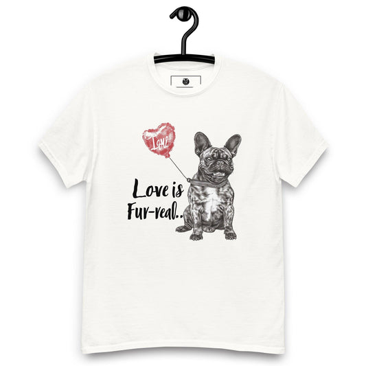 Celebrate the fur-real bond you share with your furry companion with designs like "Love is Fur-real", featuring a Frenchie holding a heart balloon, or "Love bites!" showcasing a charming Frenchie head surrounded by heart balloons. With each piece carefully crafted to spread love and joy, our Frenchie Valentines Collection is the perfect way to express your affection for your four-legged friend.