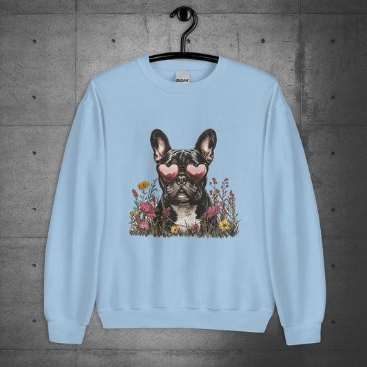 Indulge in the whimsy of love-themed designs featuring adorable French Bulldogs expressing affection in every stitch. Whether it's a Frenchie holding a delicate rose, or two French Bulldogs snuggled up under a blanket with the caption "Wrapped in Love", each garment in this collection is a testament to the unconditional love shared between humans and their beloved Frenchie's.