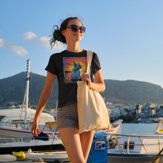 Frenchie Sitting on a dock of a bay - unisex organic cotton t-shirt