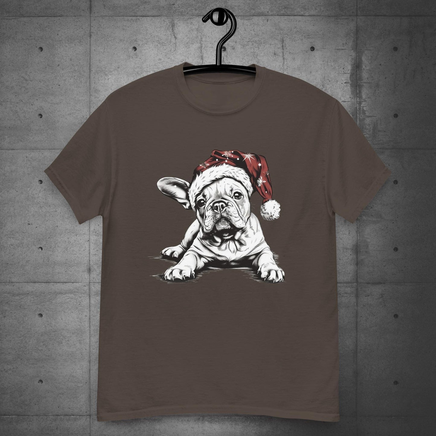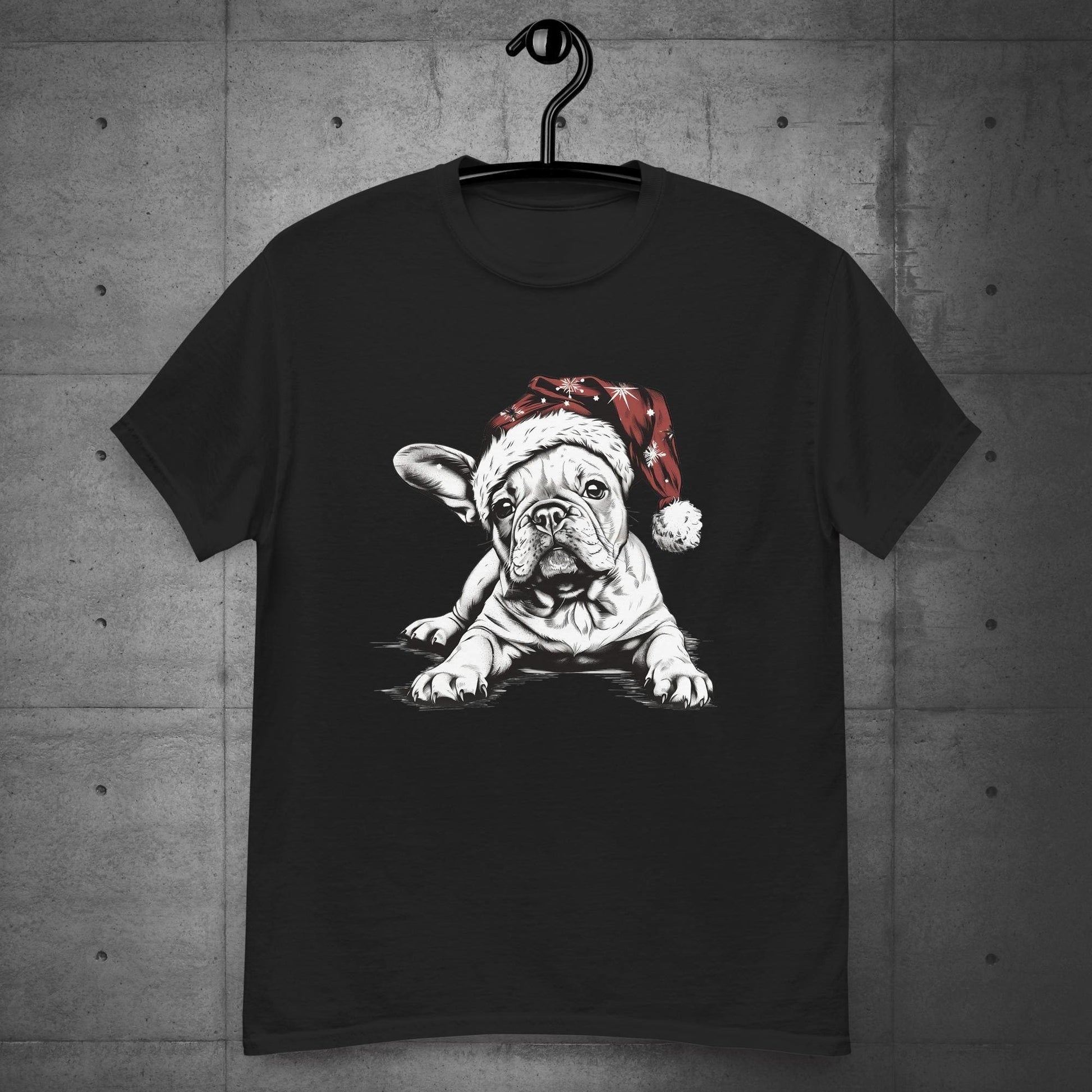 Celebrate the holidays with our “Feliz Navidad French Bulldog” Unisex Christmas T-Shirt! Featuring an adorable Frenchie donning a festive red and white Santa hat, this design brings joy and holiday cheer to any outfit. Perfect for French Bulldog enthusiasts and Christmas lovers, this tee is ideal for holiday parties, family gatherings, or spreading festive vibes all season long. Add this cute Frenchie tee to your wardrobe and say “Feliz Navidad” with style!