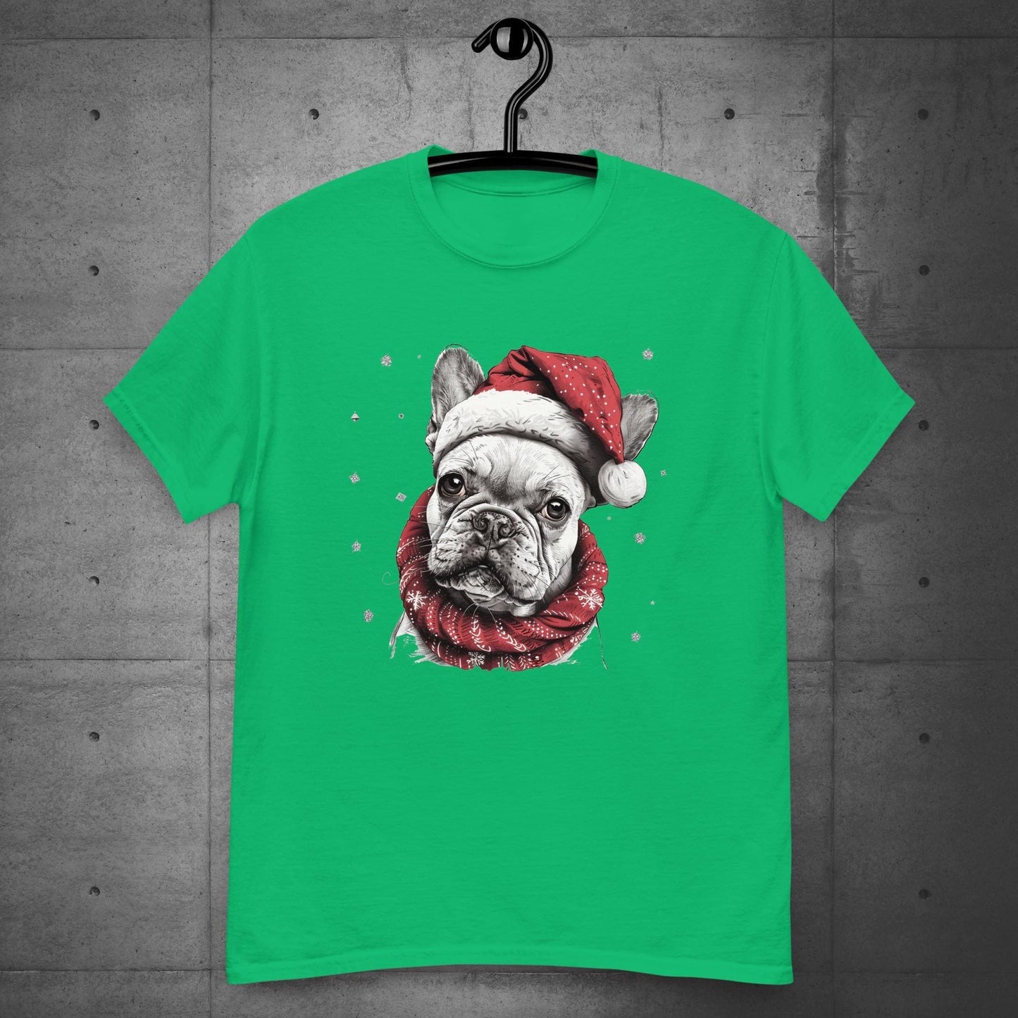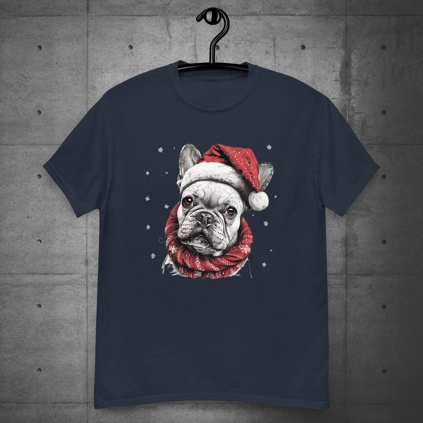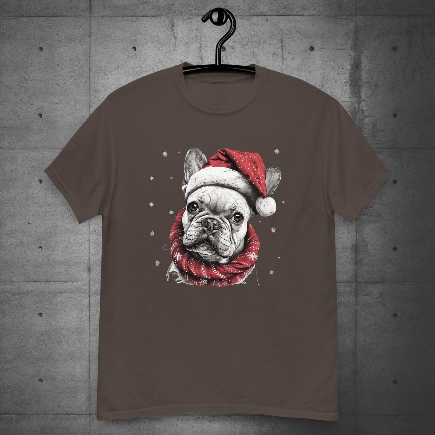 Celebrate the holiday season with our “Joyeux Noël French Bulldog” Unisex T-Shirt! Featuring a charming French Bulldog wearing a festive Santa hat and a cozy red scarf adorned with snowflake patterns, this design brings warmth and joy to your Christmas wardrobe. Perfect for Frenchie enthusiasts and holiday lovers, this tee is ideal for spreading festive vibes at parties, family gatherings, or casual outings. Say “Joyeux Noël” in style with this must-have Christmas t-shirt that combines holiday cheer with Frenchie cuteness!