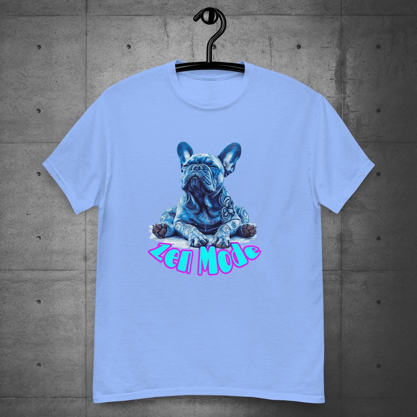 Embrace tranquillity with our "Zen Mode Frenchie" Unisex T-Shirt. Featuring a serene French Bulldog in a meditative pose, adorned with intricate blue patterns, this design exudes calm and relaxation. The vibrant "Zen Mode" text adds a playful touch, making it perfect for those who love combining style with a sense of inner peace. Ideal for casual wear, this t-shirt is a reminder to stay calm and collected in any situation.